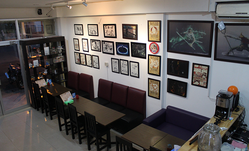 広々とした店内には、日本でも珍しいポスターやフィギュア、複製原画などが並べられ、ゆったりとしたスペースで多くのお客様にクールジャパンを堪能しながら、くつろげるお店作りをおこないました。ランチ、ディナーはもちろん、漫画の購買から、打ち合わせ、貸切パーティー、ワークショップまで多彩なスタイルでご利用頂けるカフェにしました。